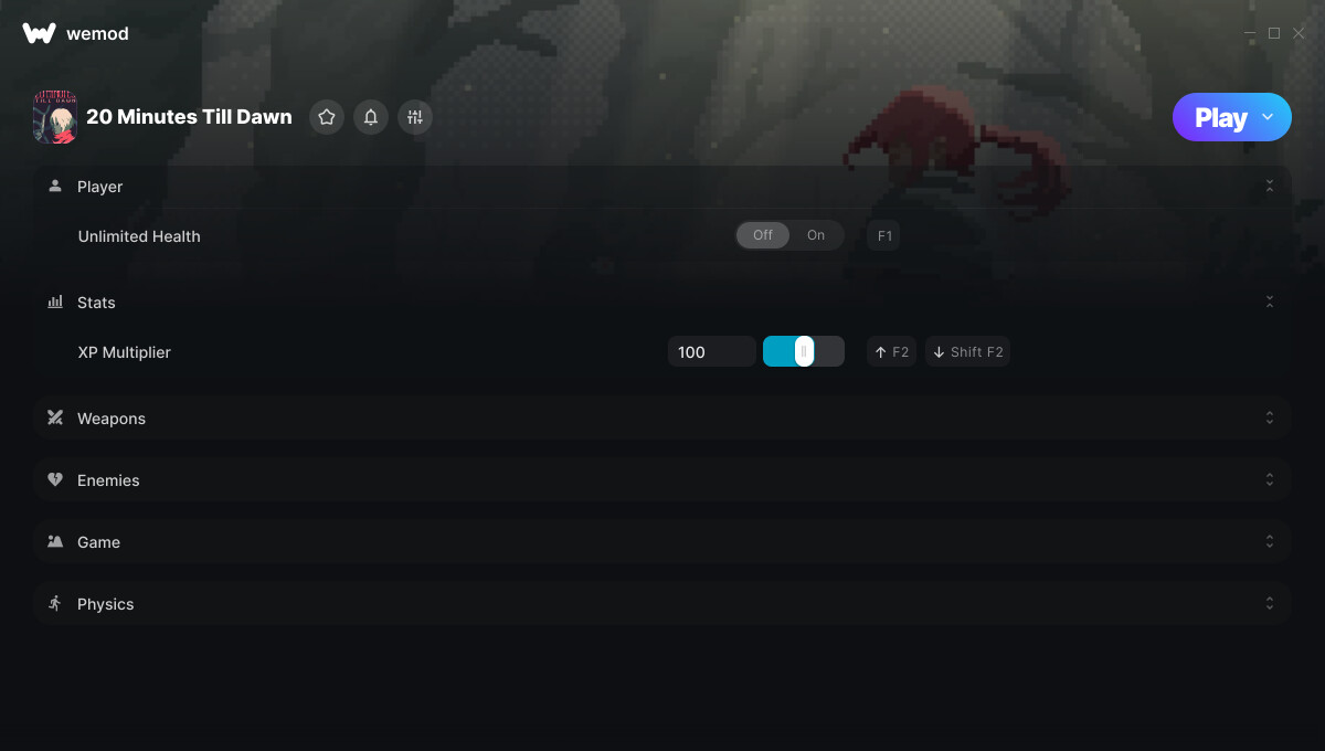 This is the official discussion topic of the 20 Minutes Till Dawn Trainer and Cheats in the WeMod app. Please post any suggestions, bug reports, or praise that you may have for the cheats in here!