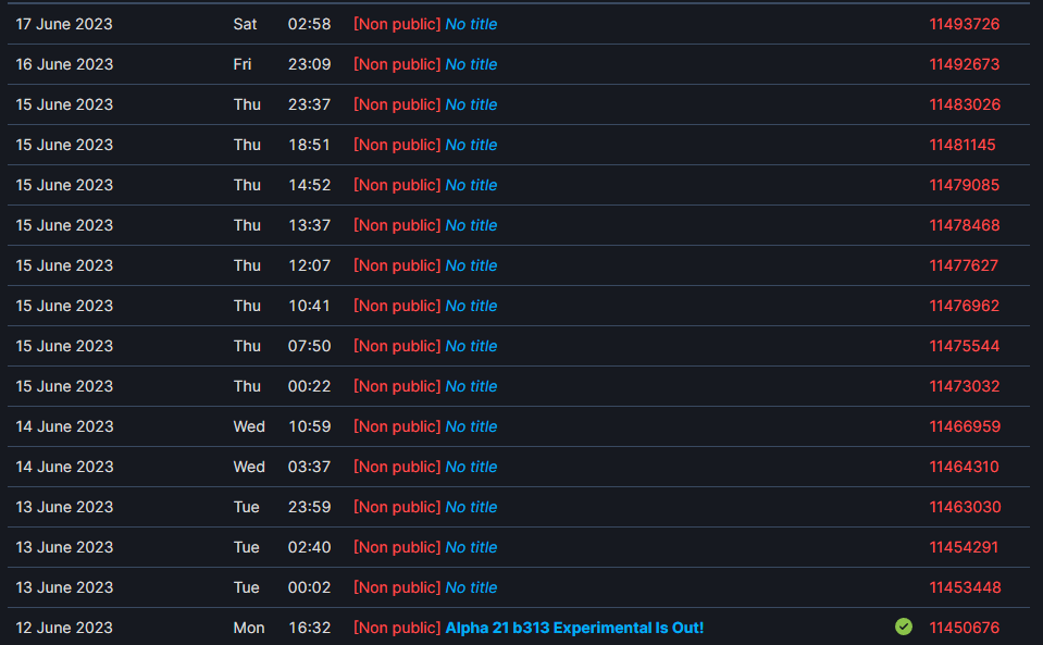This screencap was from the beginning of June for A21 Experimental and the hidden updates (you can see that the Thursday had EIGHT).