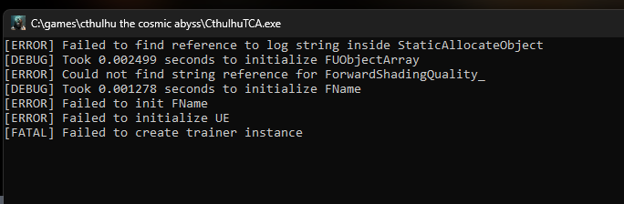 When I run the mod, I get a message from the game that says: [ERROR] Failed to find reference to log string inside StaticAllocateObject