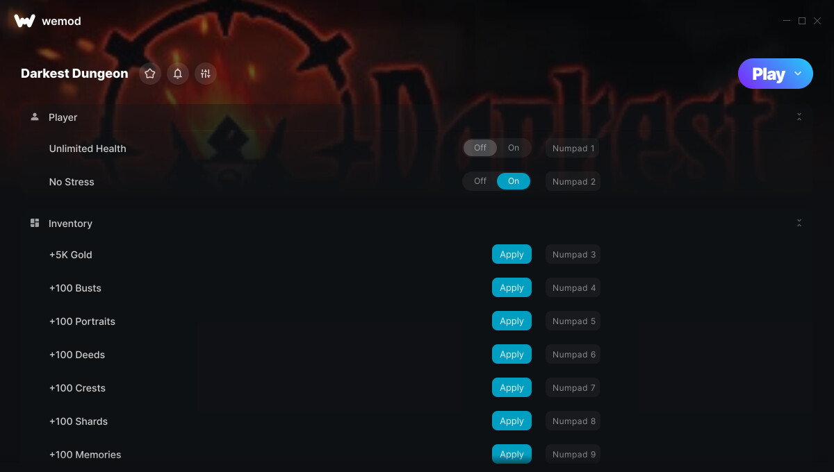 Trainer Options and Cheats: