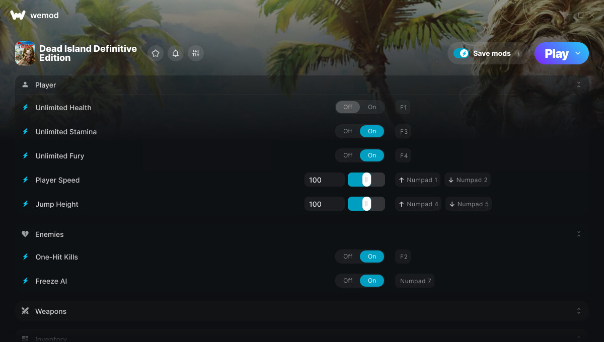 The cheats for Dead Island Definitive Edition work very well except for the Unlimited Stamina option, I could not get that to even turn on. The add 10k Money cheat works if I click the option in the cheat menu, but if I use the numpad 9 key nothing happens. Other than those 2 options everything else works wonderfully. Thank You guys!