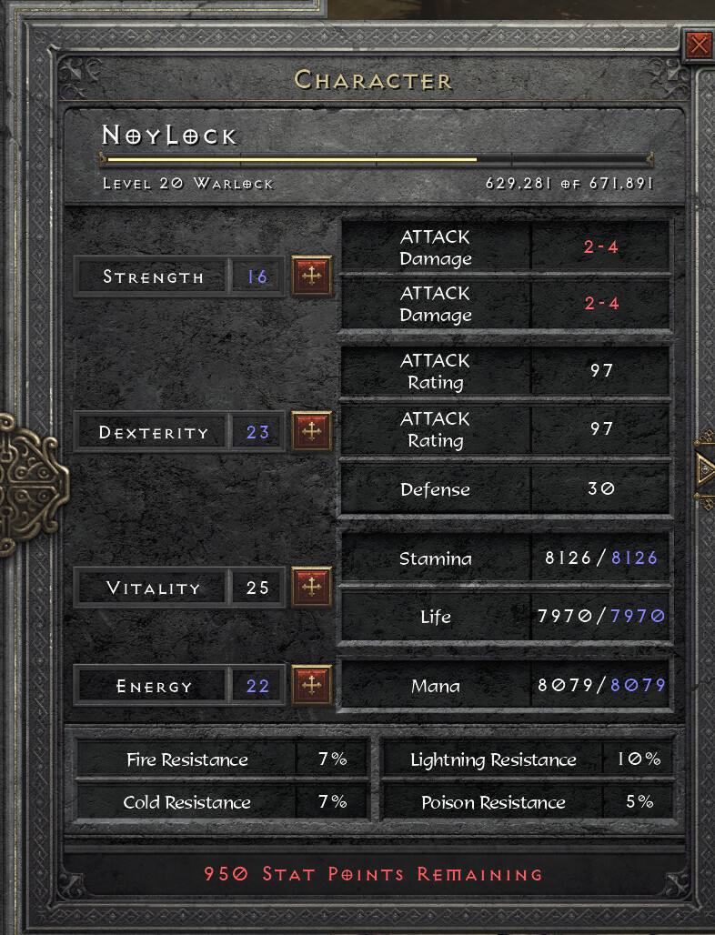 Oh I just remembered, That toon somehow got bugged itâs Base hp/sta/mp are all about 8k Iâll try and post the a screenshot, I did a respec and have 950 stat points now and 176 skill points at lvl 20.