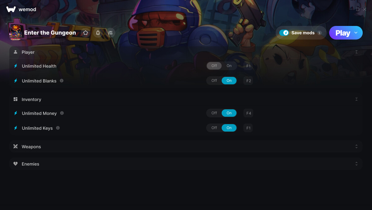 This is the official discussion topic of the Enter the Gungeon Trainer and Cheats in the WeMod app. Please post any suggestions, bug reports, or praise that you may have for the cheats in here!