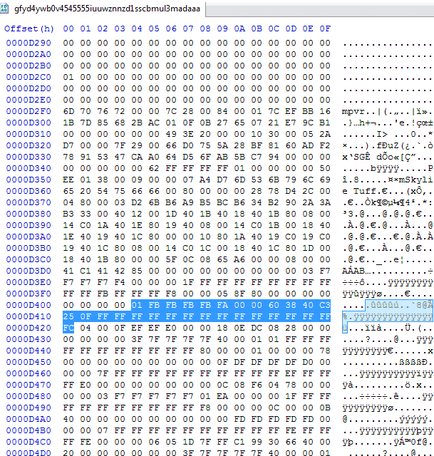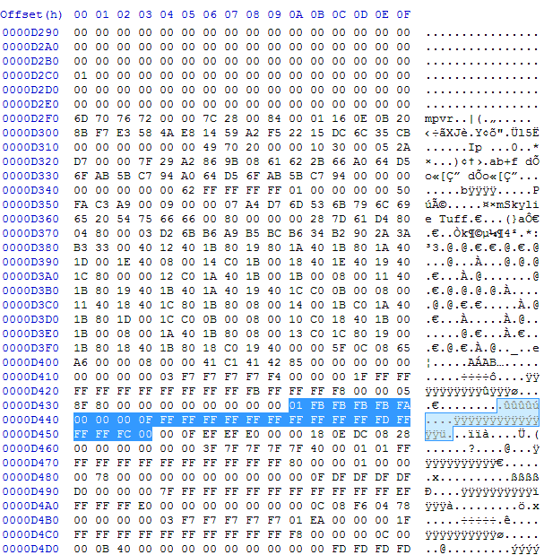 01 FB FB FB FB FA 00 {00} 00 0F FF FF FF FF FF FF FF FF FF FF FD FF FF FF FC FC