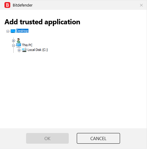 8. Once in the Advanced Threat Defense Settings panel we’re going to add 2 exe files to the exception list by selecting Add applications to exceptions