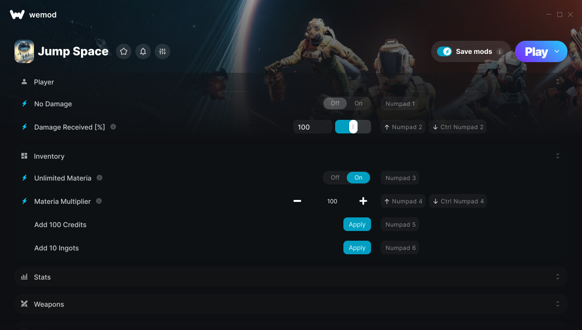 This is the official discussion topic of the Jump Space Trainer and Cheats in the WeMod app. Please post any suggestions, bug reports, or praise that you may have for the cheats in here!
