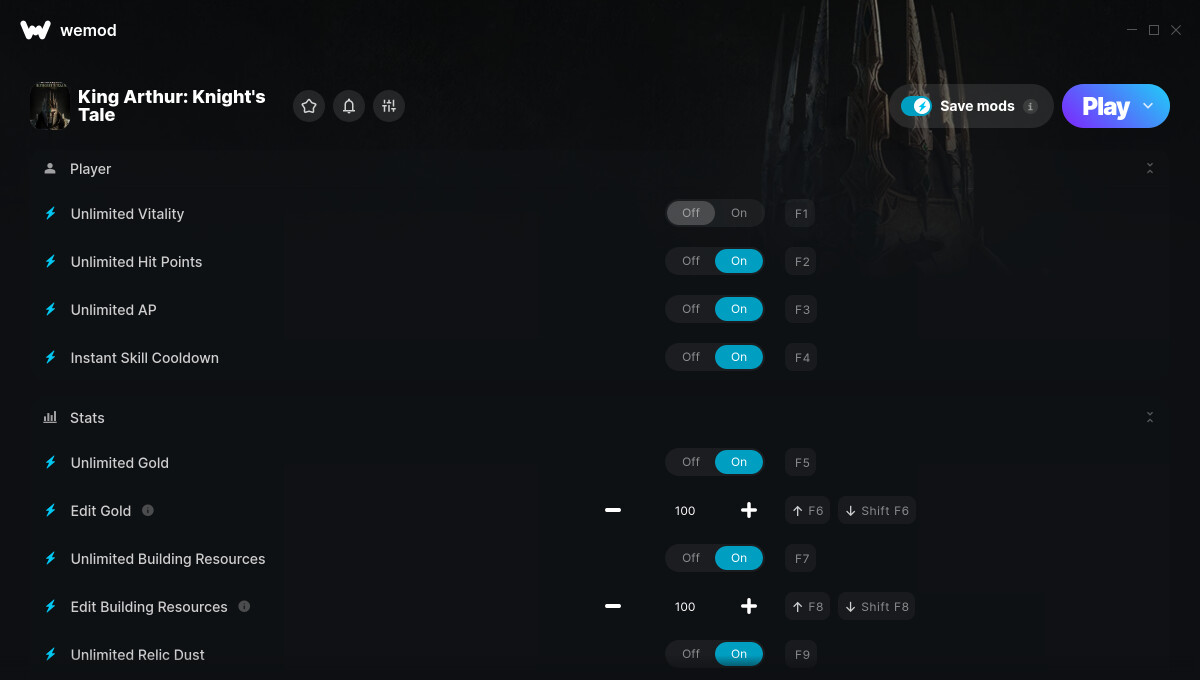 I played the game King Athur’s… with unlimited resources on hard with happiness. Then after a while I started a new campaign. In the mean time Wemod was updated. In the new campaign unlimited relic dust only did not work. I can hear the sounds, that’s all. I tried the old campaign and cannot refresh relic dust. So it stopped working there too