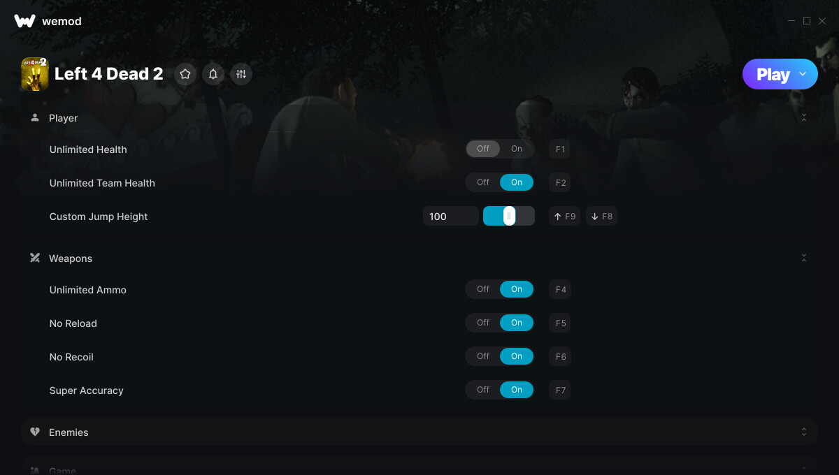 This is the official discussion topic of the Left 4 Dead 2 Trainer and Cheats in the WeMod app. Please post any suggestions, bug reports, or praise that you may have for the cheats in here!
