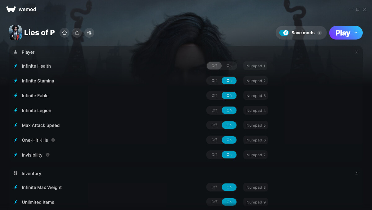 This is the official discussion topic of the Lies of P Trainer and Cheats in the WeMod app. Please post any suggestions, bug reports, or praise that you may have for the cheats in here!