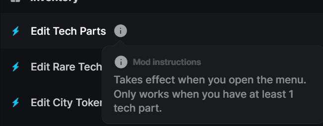As soon as I enter any value against the inventory items like tech parts it quickly changes back to 0 within a fraction of a second.