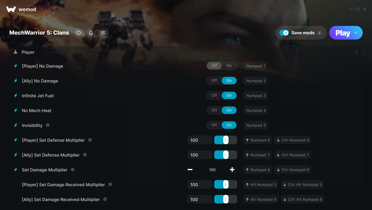 This is the official discussion topic of the MechWarrior 5: Clans Trainer and Cheats in the WeMod app. Please post any suggestions, bug reports, or praise that you may have for the cheats in here!