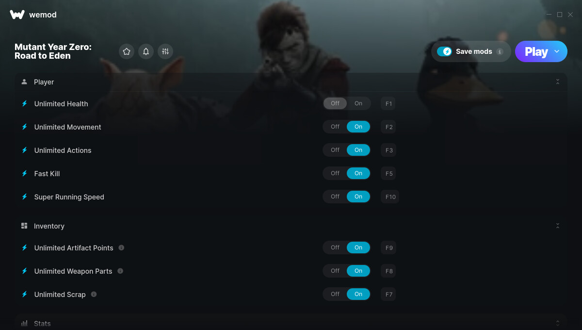 I’m using Windows 7 with a copy of Epic Games Mutant Year Zero Road to Eden attempting to gain access to “Super Running Speed” in my game.