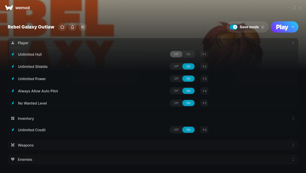 This is the official discussion topic of the Rebel Galaxy Outlaw Trainer and Cheats in the WeMod app. Please post any suggestions, bug reports, or praise that you may have for the cheats in here!