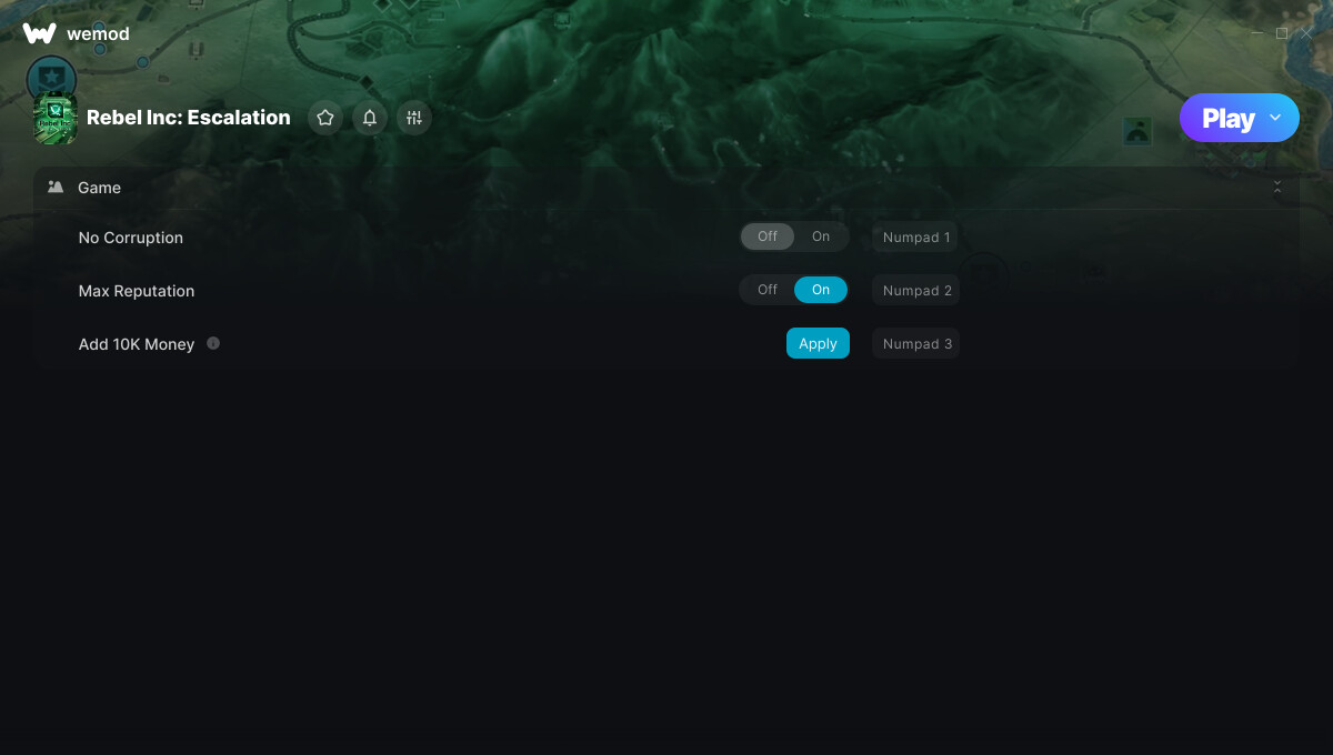This is the official discussion topic of the Rebel Inc: Escalation Trainer and Cheats in the WeMod app. Please post any suggestions, bug reports, or praise that you may have for the cheats in here!