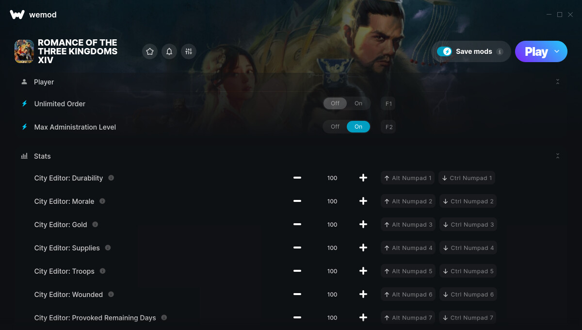 Can the changes data be saved? When I replay the game after saving the changes from WeMod, I discovered the data , eg number to troops in the City, are back to square one