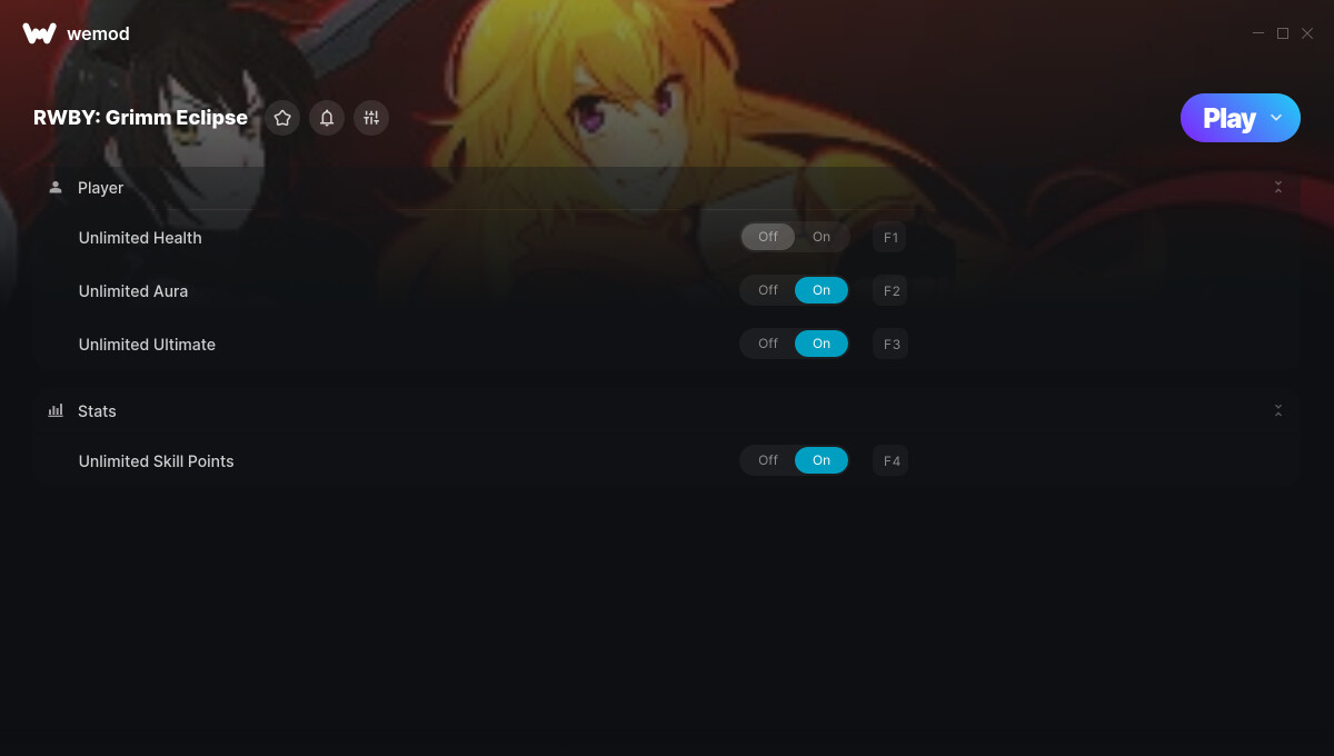 This is the official discussion topic of the RWBY: Grimm Eclipse Trainer and Cheats in the WeMod app. Please post any suggestions, bug reports, or praise that you may have for the cheats in here!