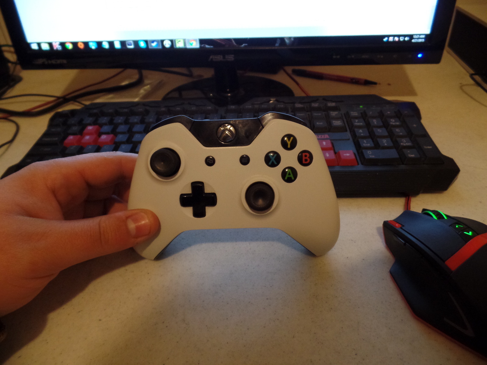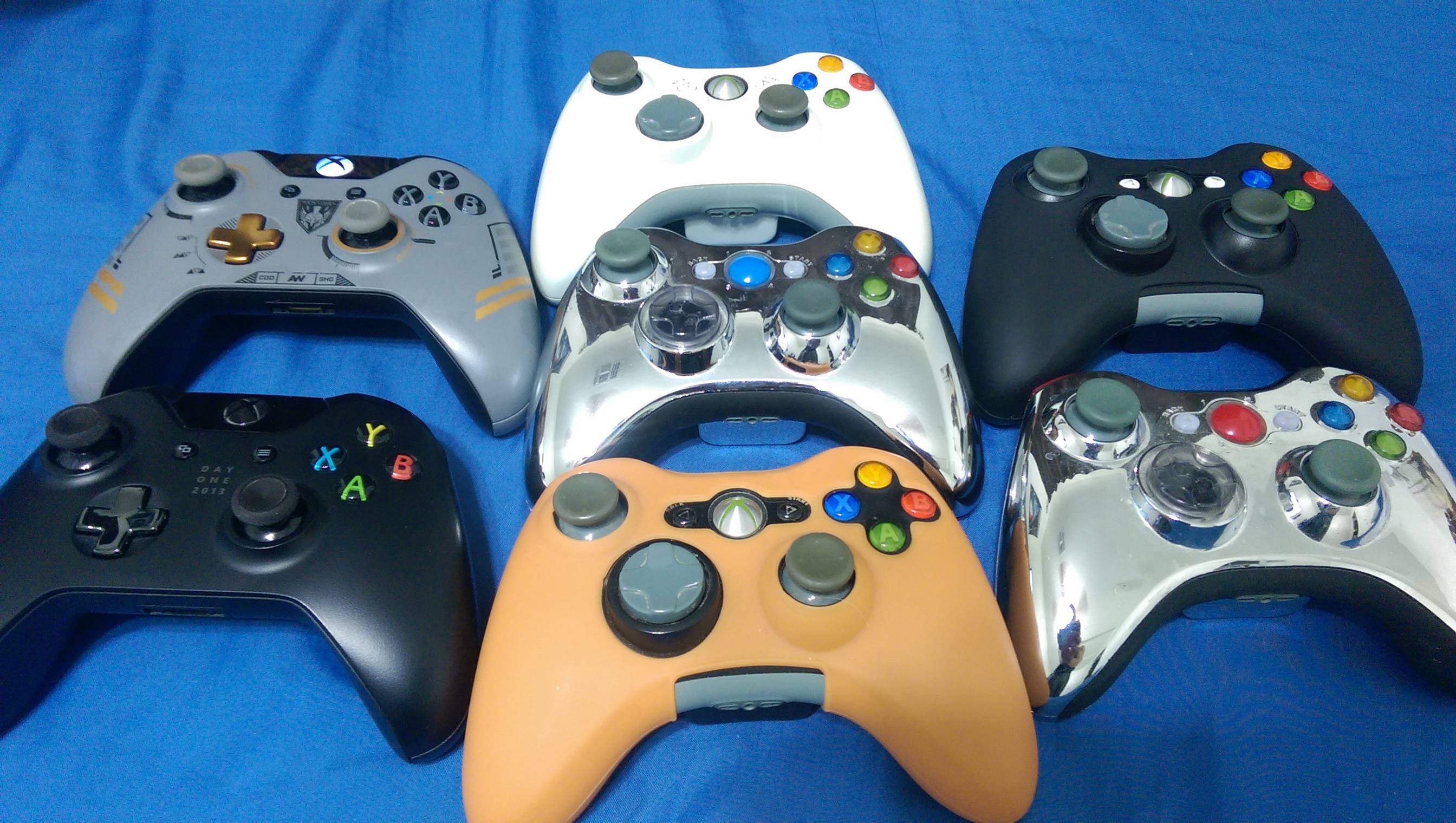 I just got done modifying my Xbox 360 controller earlier and it got me wondering. What do all of you sport for controllers? Anything cool to show off?