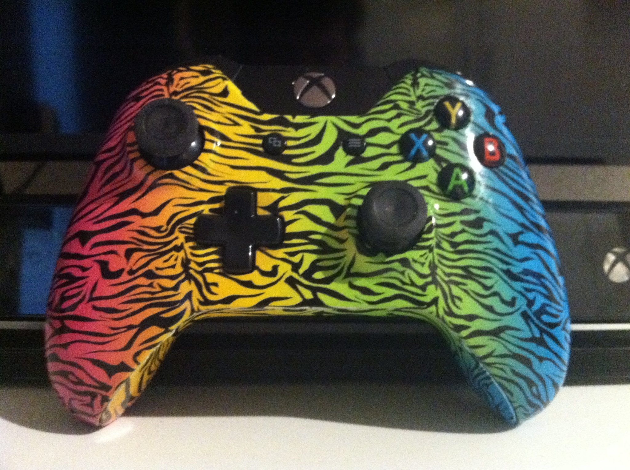 I ruined too many of my light up power A controller’s trying to solder in extra lights. I suck at soldering. Not bad at painting though. Had this sexy looking controller where I used black,gold, and red in just the right fashion to give out an interesting phenomenon I couldn’t explain. I wish I still had the controller. Next one I’ll be designing when I get the money is this http://imgur.com/RmopiS5