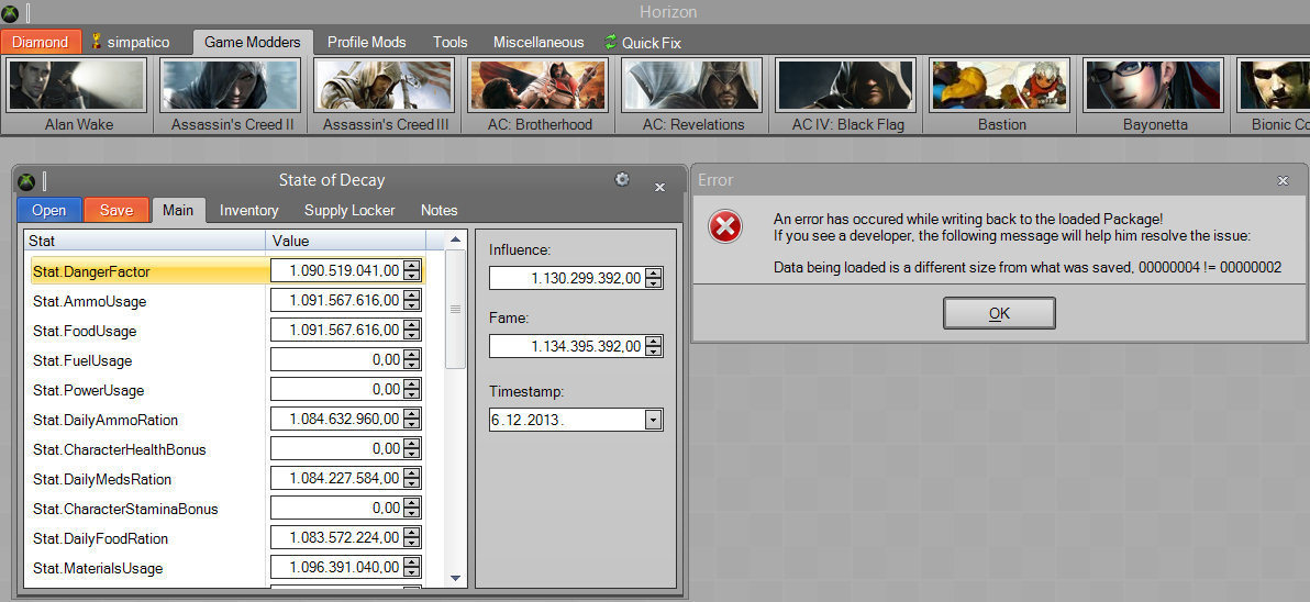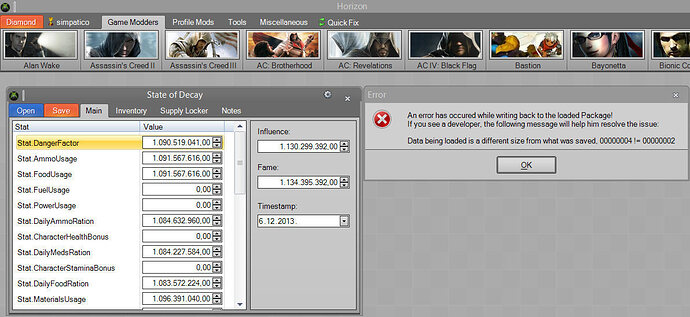 I’m unable to save modded savegame for State of Decay (with TU4). I’ve tried two different savegames