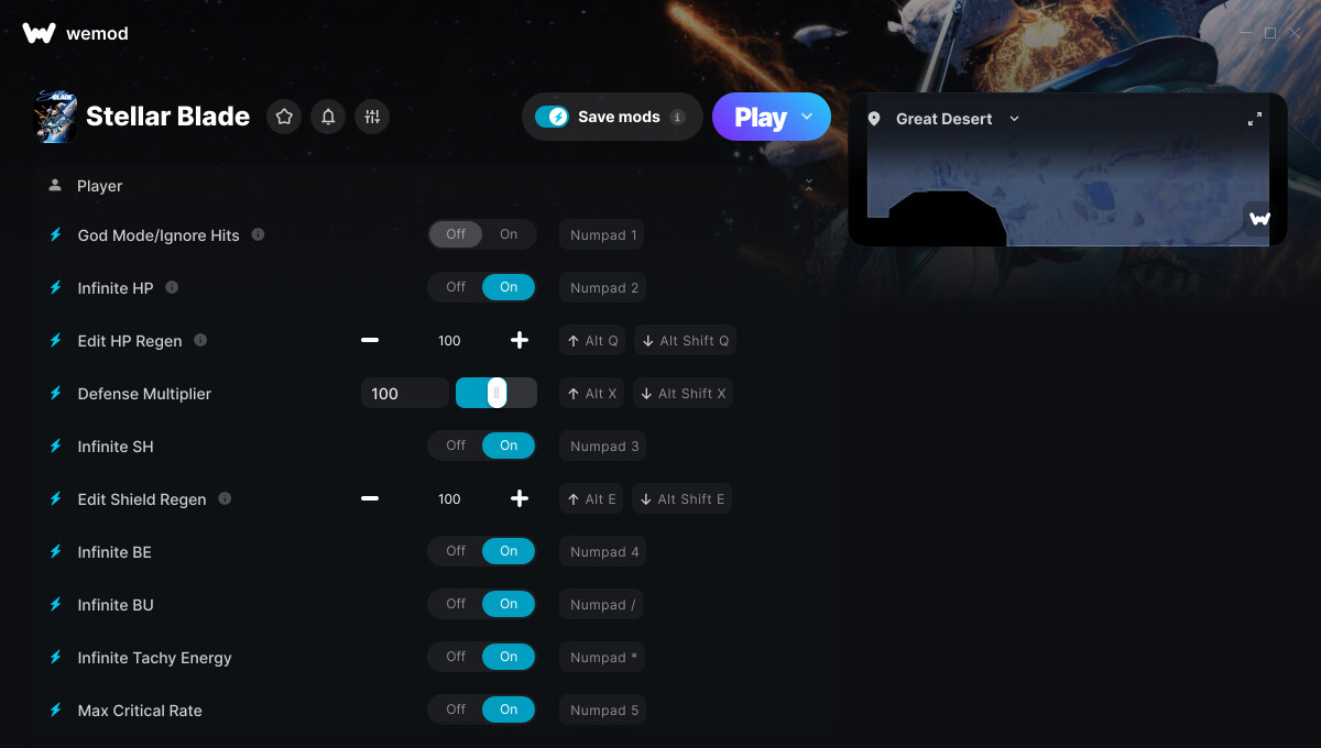 This is the official discussion topic of the Stellar Blade Trainer and Cheats in the WeMod app. Please post any suggestions, bug reports, or praise that you may have for the cheats in here!