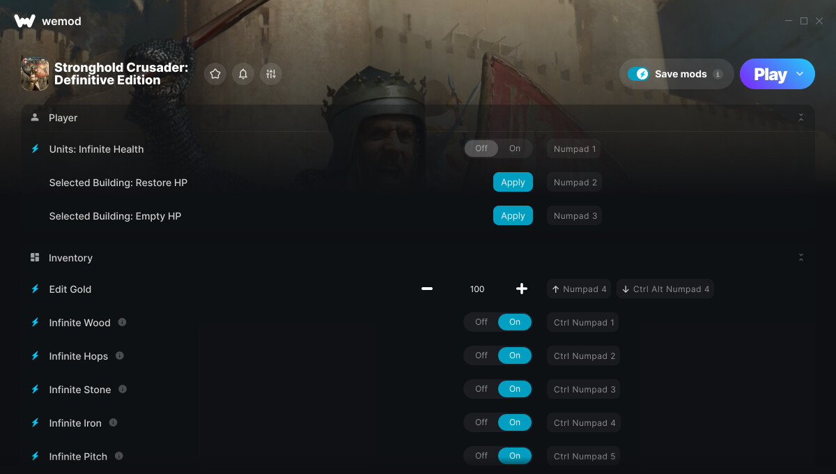 I want to say that I genuinely appreciate Wemod’s Stronghold Crusader DE Cheat engine trainer. I genuine simply wish that just like the one for Stronghold Warlords that rather than simply setting gold and/or unlimited resources individually of every type of individual resource. That additionally there could potential possibly be a cheat for multiplying gold accumulation and multiplying Resources accumulation.