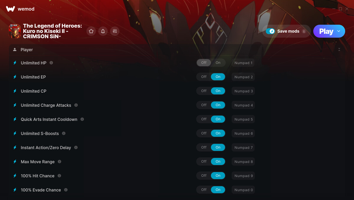 Trainer Options and Cheats: