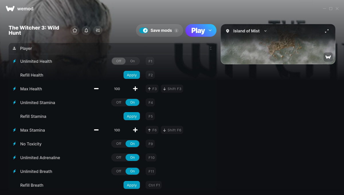 I see that it was “updated” on 12/19/22, but it still has issues. Some of the cheats work, and some dont. I have a legit GOG version, and the game is up-to-date. I am also using the WeMod Witcher 3 complete edition GOG cheats. I have tried using the regular witcher 3 cheats, as well as tried other versions, such as Steam or Uplay, but none of them will even turn on when pressing play, so I can only activate WeMod with the complete edition GOG version. I havent tried all the cheats, but I have tried increasing weight limit. That one works, but the increase perk points doesnt work at all, and when using “gain exp”, it doesnt actually give me any exp, but for some reason gives me 500 perk points. I saw that you said easy gwent was added, but its not on my WeMod, and occasionally when trying to activate “add 10 perk points” the game crashes. I havent tried anything else, because the game crashes too often. I tried to teleport once and game crashed. I am thinking maybe my WeMod app isnt up to date, but it hasnt run any update in the last few days. Any thoughts?