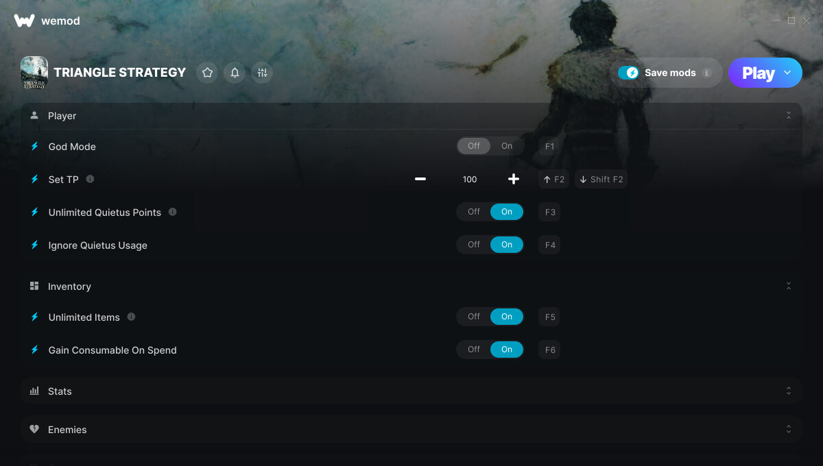 This is the official discussion topic of the TRIANGLE STRATEGY Trainer and Cheats in the WeMod app. Please post any suggestions, bug reports, or praise that you may have for the cheats in here!
