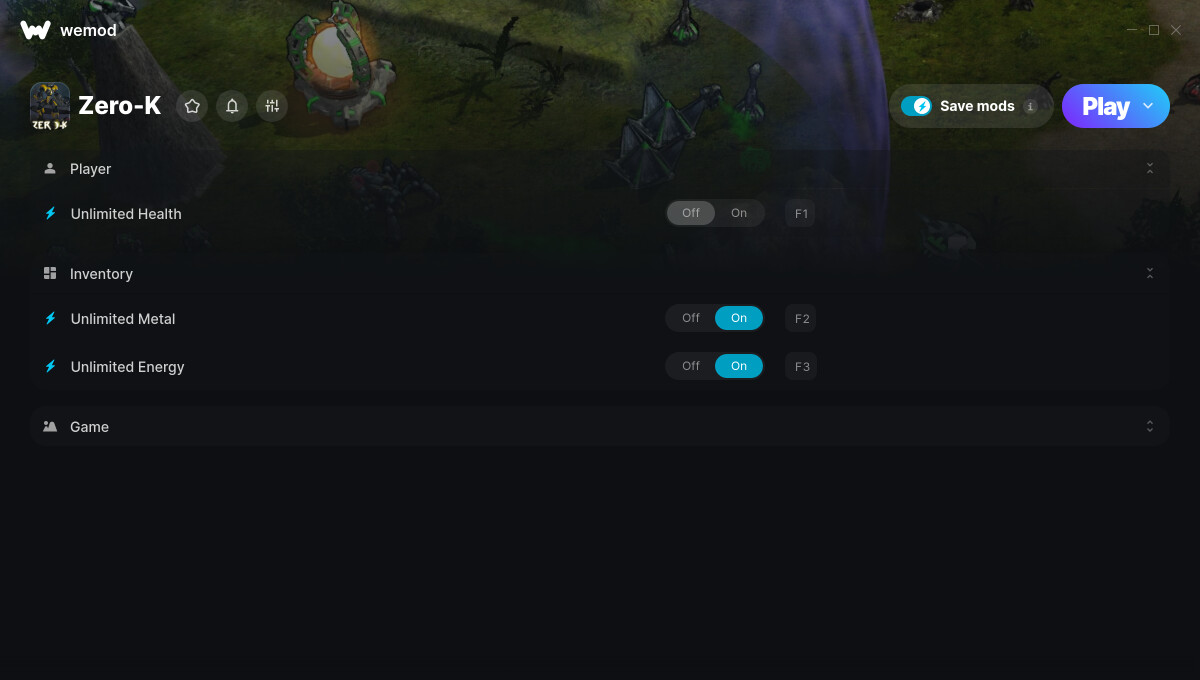 Wednesday, 3 April 2024. I have the latest version of Zero-K and WeMod installed and WeMod has stopped working. When I try to turn on Unlimited Health it turns off after 5 seconds. It use to work fine, but the latest update of Zero-K through Steam seems to have changed things. Are you able to look into this and repair the cheats if possible? Thanks in advance.